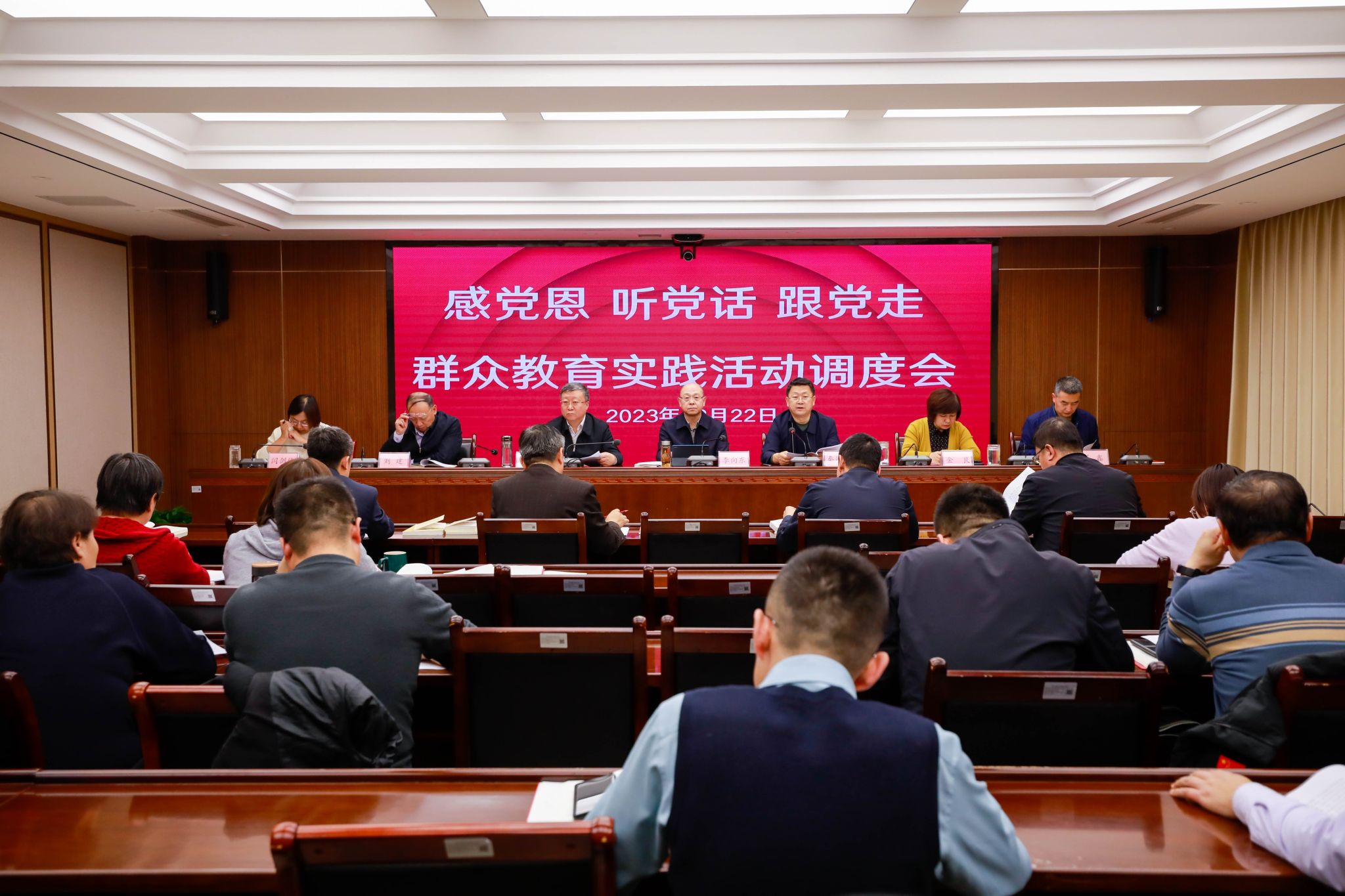 12月22日,学校召开“感党恩、听党话、跟党走”群众教育实践活动调度会。学校党委班子及各主题教育组组长、副组长,相关部门负责人参加会议。